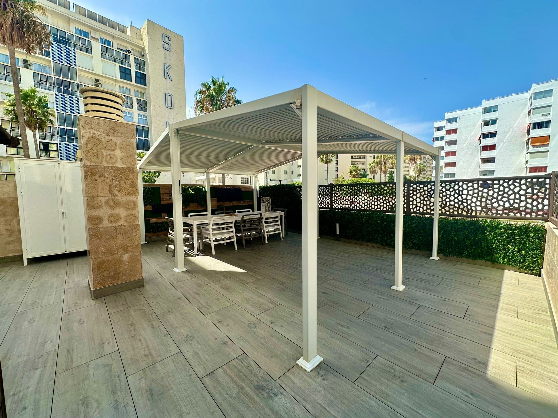 Apartamento reformado en Marbella centro, a pasos del Paseo Marítimo. 2 dormitorios, terraza de 60 m² con pérgola bioclimática y trastero incluido.